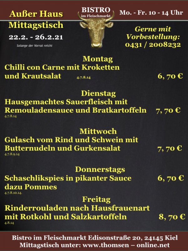 Im angeschlossenen Fleischdirektmarkt THOMSEN Fleischmarkt haben Privatkunden aus Kiel und Umgebung Fleisch direkt aus der Produktion zu erwerben.